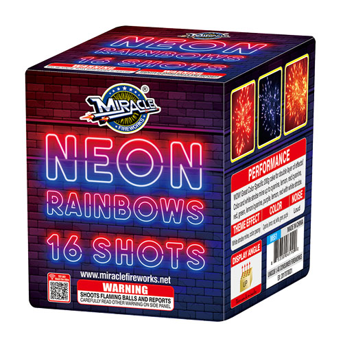 16 shot 200g cake from Miracle fireworks. Lots of Neon Color Pearls!