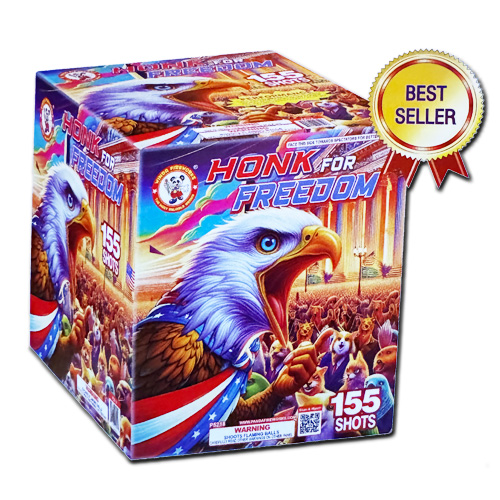Blue and red strobes frame brocade tails to big golden willows. A patriotic finale!