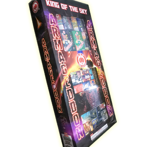 Armageddeon is Red Lanterns biggest and best assortment. Standing almost 5 feet high and packed full of 60g cannisters, artillery shells, 500g cakes, 200g cakes, 500g fountiains and 200g fountains it is all you need for a memorable night : )