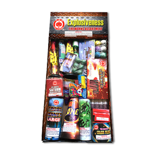 Explosiveness is a nice small sized family assortment that contains fountains, saturn missile base, fire crackers, novelites and smoke balls. A great budget friendly assortment!