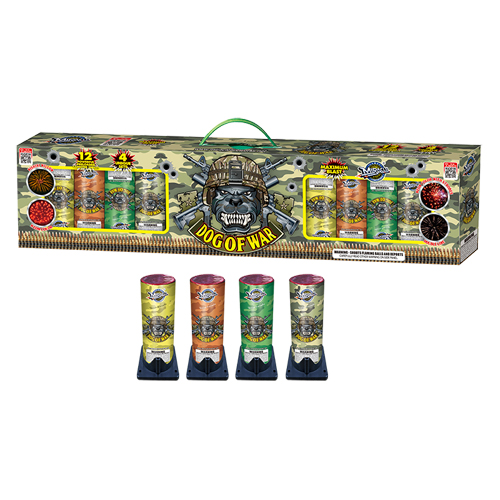 Dog of war is a preloaded 12 effect canister shell pack! Great breaks!