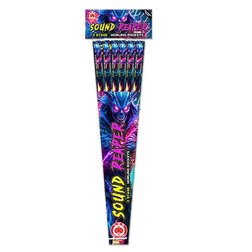 This 6 pack of howling rockets feature loud howling tails to Brocade Crown, Red and Green Strobe and Chrysanthemums.