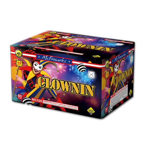 Clowinin is a 45 shot 500g cake featuring these effects and it lasts 60 seconds!:
