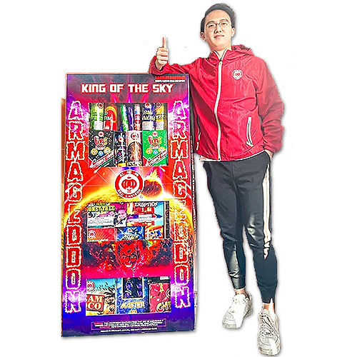 Armageddeon is Red Lanterns biggest and best assortment. Standing almost 5 feet high and packed full of 60g cannisters, artillery shells, 500g cakes, 200g cakes, 500g fountiains and 200g fountains it is all you need for a memorable night : )