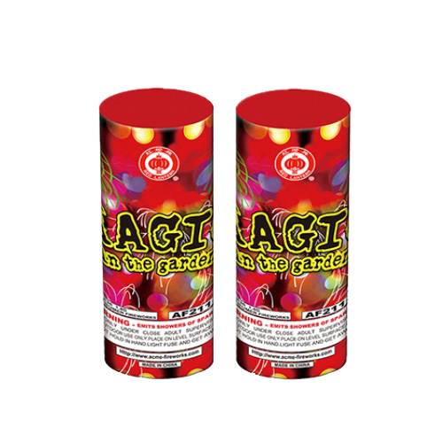 This fountain puts on a nice show with colors and crackling. Lasts about 30 seconds each.