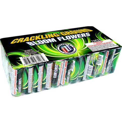 Crackling Ground Blooms spin very fast on the ground with 3 changing color,ending with a loud burst of crackling. This is a brick of 72 pieces.