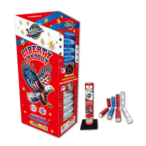 New item from Miracle fireworks. Liberty loadout has 24 shots in different sizes. 4",5",6" and 7".