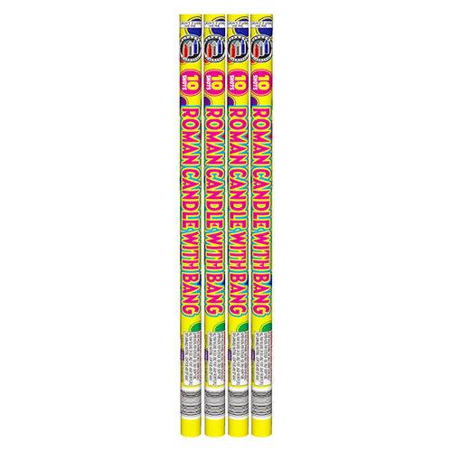 Have fun with a four pack of classic 10 ball roman candles with bangs!