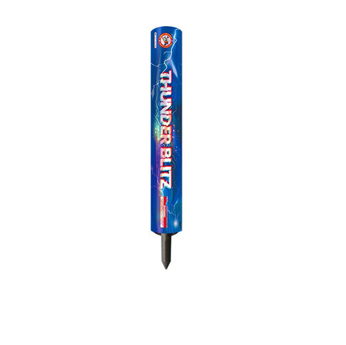 A large roman candle with 100 very loud reports, whistles and color pearls. A thundering display!